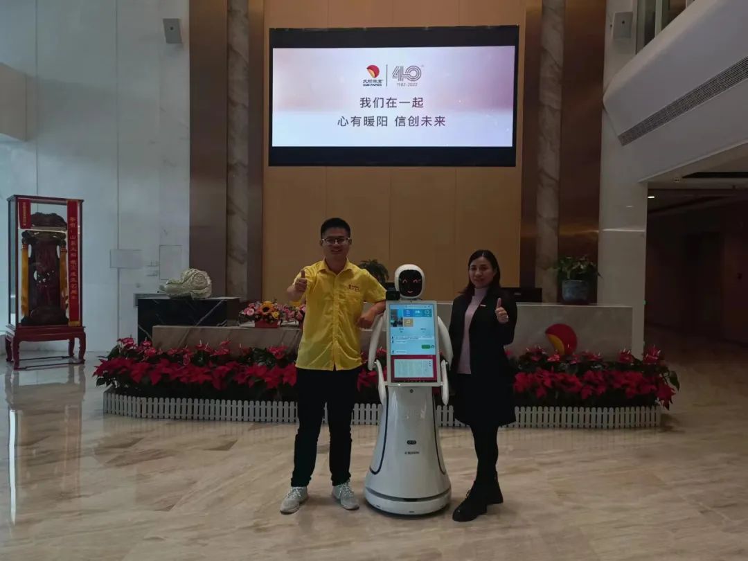 在过去的三年里,受疫情的影响“无接触测温”已是常态化工作,这三年里,Amy测温机器人服务了上百家企业,为他们站好每一班岗。为来往的客人、员工做好体温检测工作,提醒大家正确佩戴口罩等。